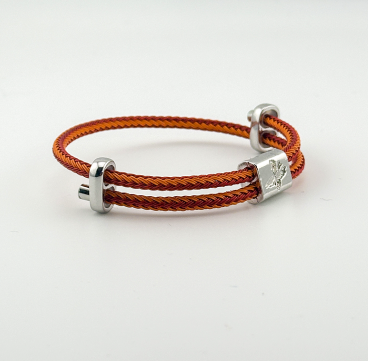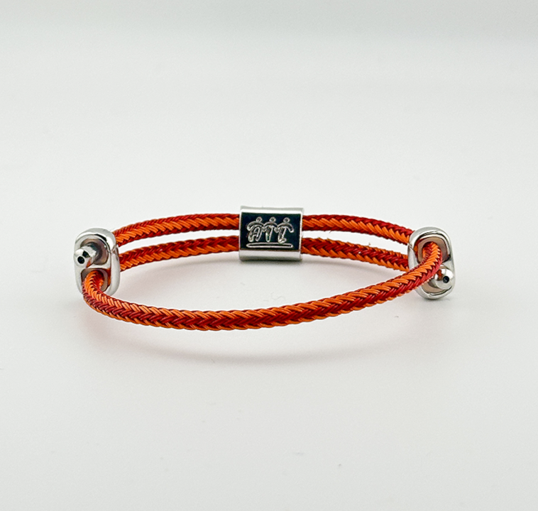 In occasione della Giornata Nazionale 2025 AIL propone il bracciale “Ali di Speranza” realizzato con fili di alluminio intrecciati a due colori, scorrevoli per adattarsi ad ogni polso, impreziosito da una piastrina di metallo con impressa l’immagine della farfalla e sul retro il logo AIL.