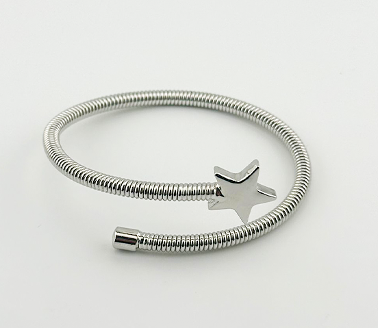 Bracciale a spirale realizzato in acciaio (Nichel, Cadmium, Lead Free), aperto, per essere adattato ad ogni polso, con logo AIL dietro la stellina.